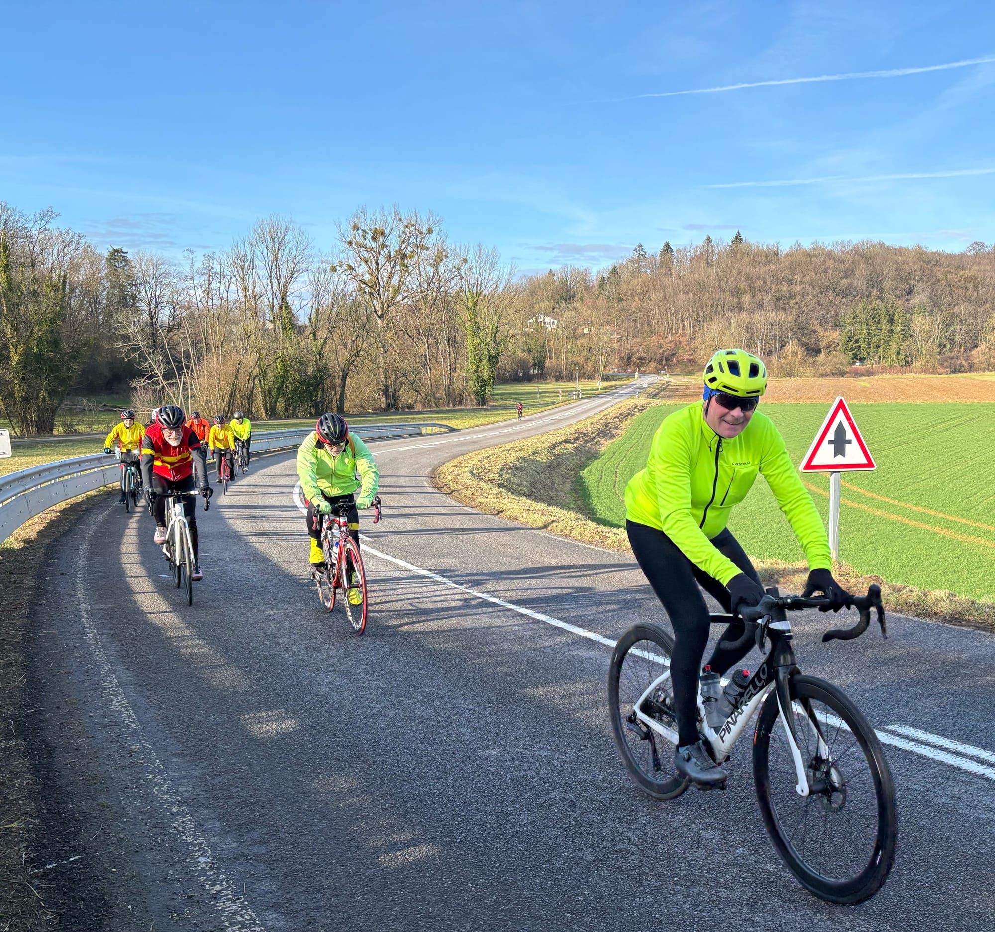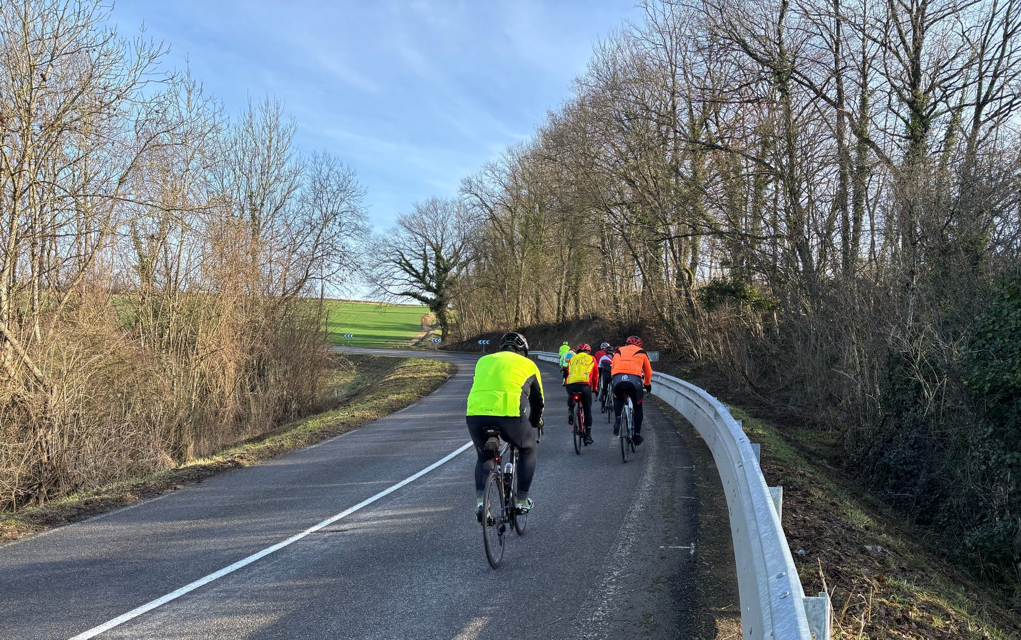 Le moral et les pneus gonflés à bloc, nous étions une douzaine à nous élancer, avec un seul objectif : rappeler à nos jambes que le vélo n’est pas un sport d’intérieur. Les premiers kilomètres ont été un peu hésitants, mais très vite, la magie du groupe a fait le reste !